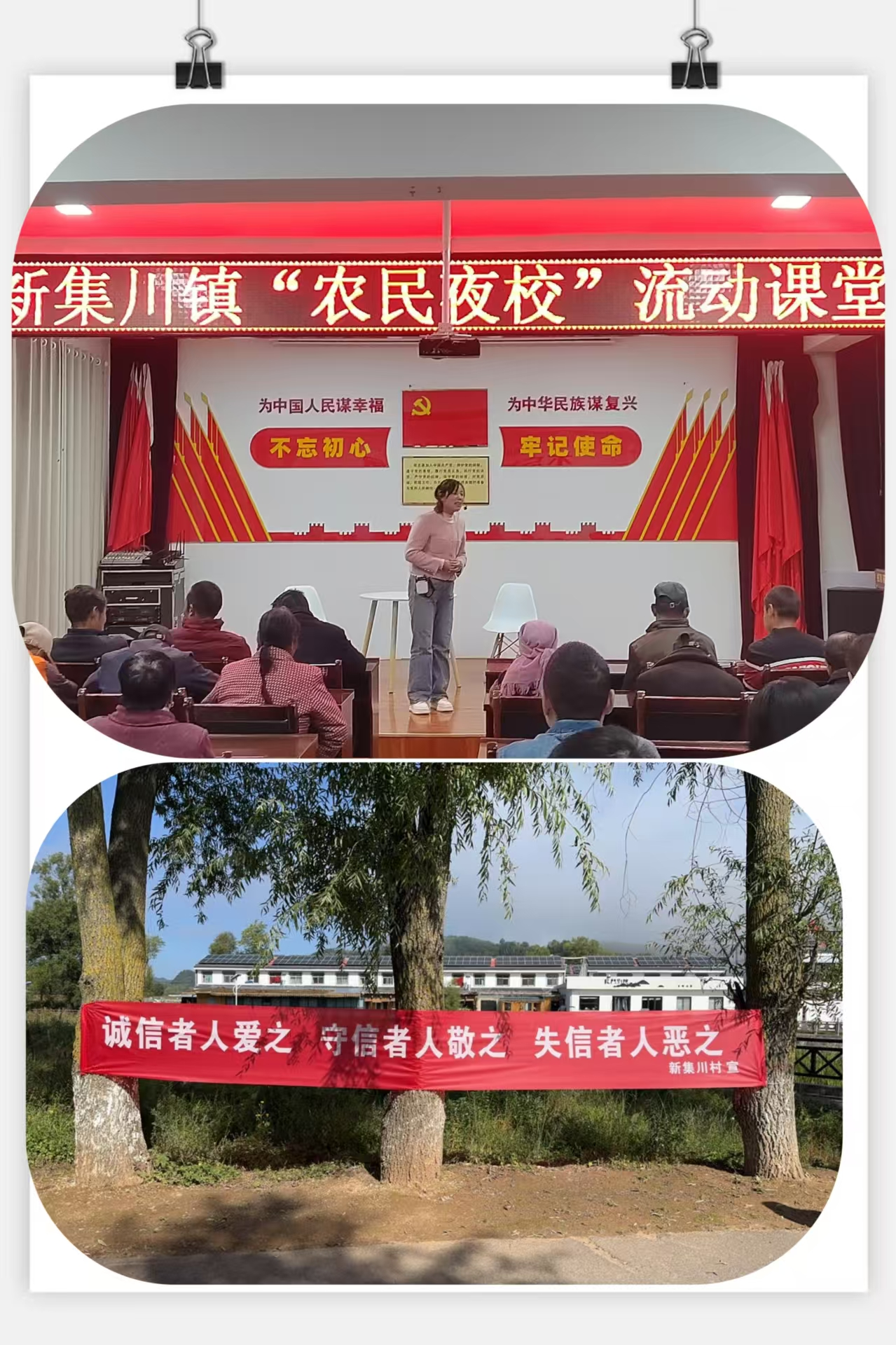 创新宣传载体,组建由法律明白人、道德模范等组成的宣讲团,依托农民夜校开展专题宣讲6次;借力新时代文明实践等活动,穿插诚信典型宣讲;工作人员深入田间地头“面对面”普及。线上通过微信公众号、微信群推送诚信故事、失信警示,构建“线上+线下”全覆盖宣传矩阵。