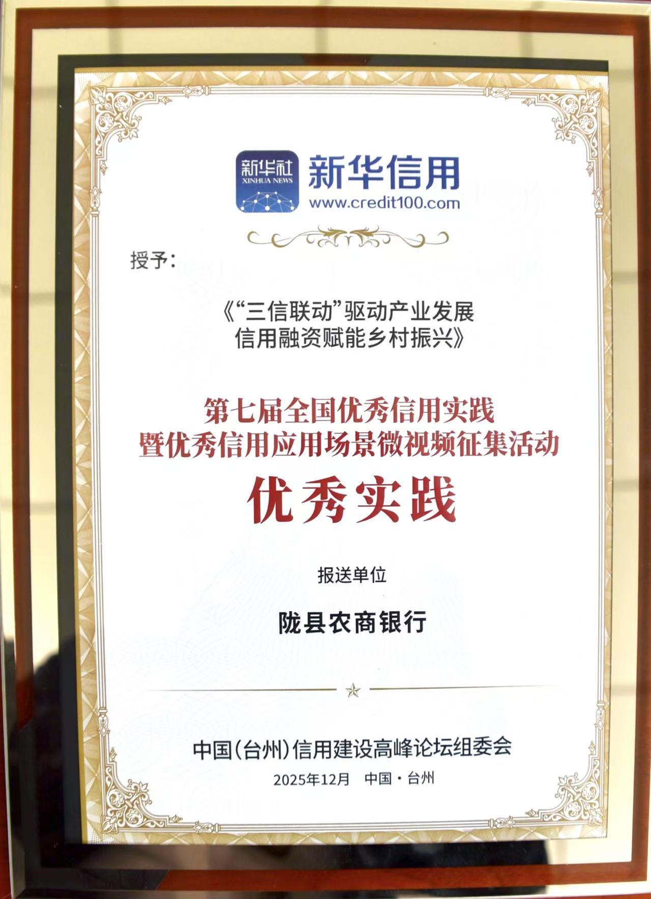 这份全国性奖项荣誉,不仅是对陇县社会信用体系建设工作的肯定,更是陇县在“信用+”场景应用领域的创新探索,也是陇县各级各部门深耕信用工作的缩影。