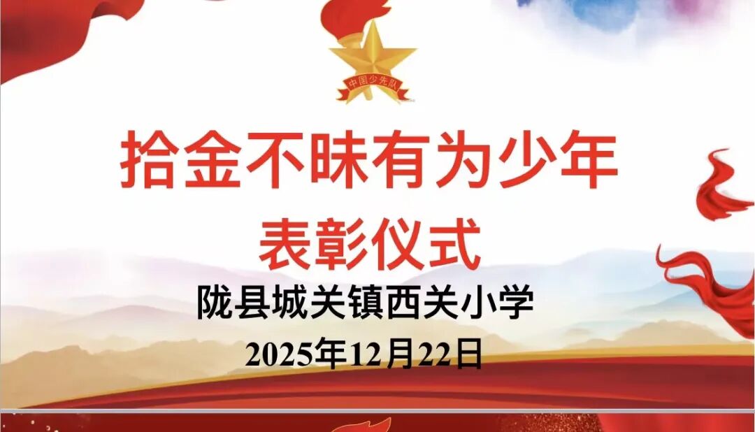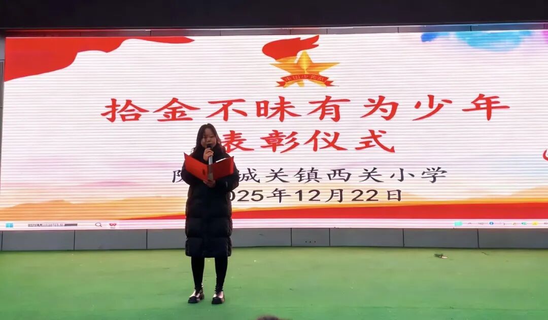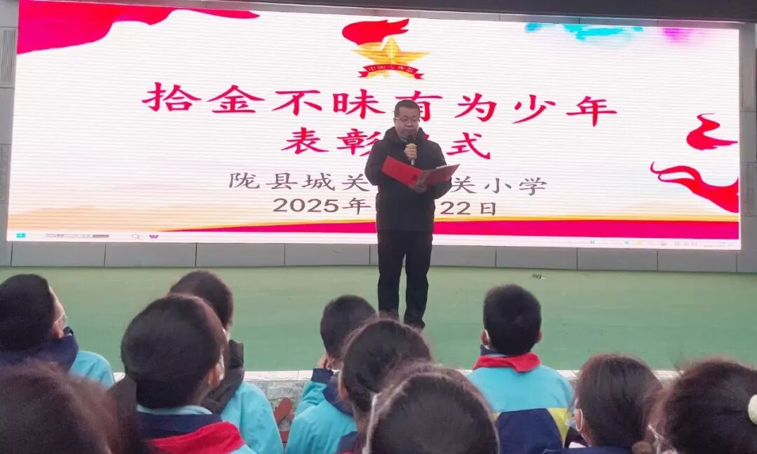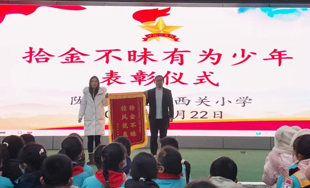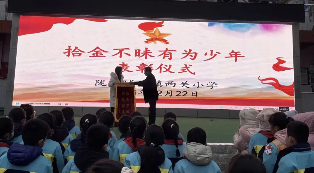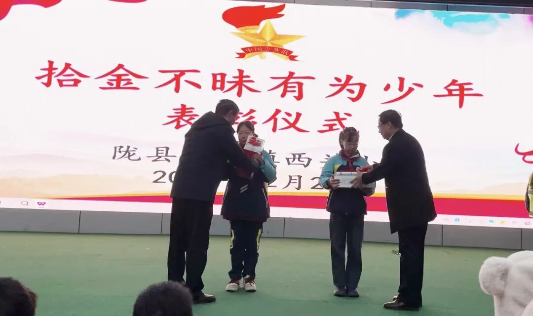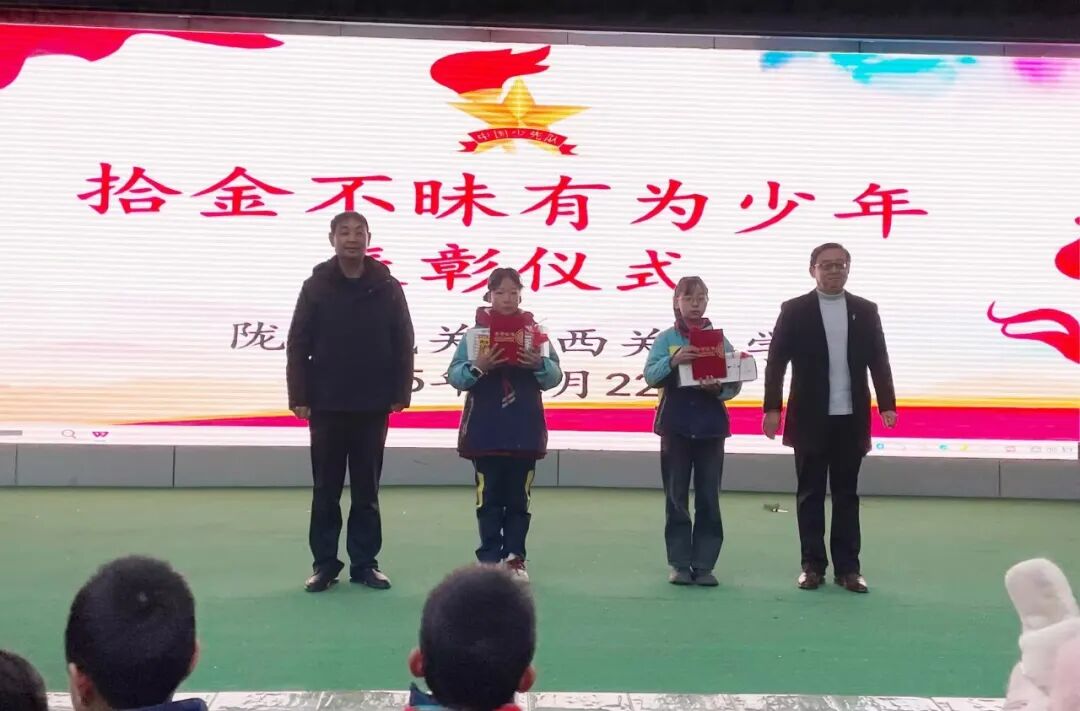 发布时间:2025/12/25拾金不昧映校风 美德之花绽校园——陇县城关镇西关小学举行拾金不昧好少年表彰仪式