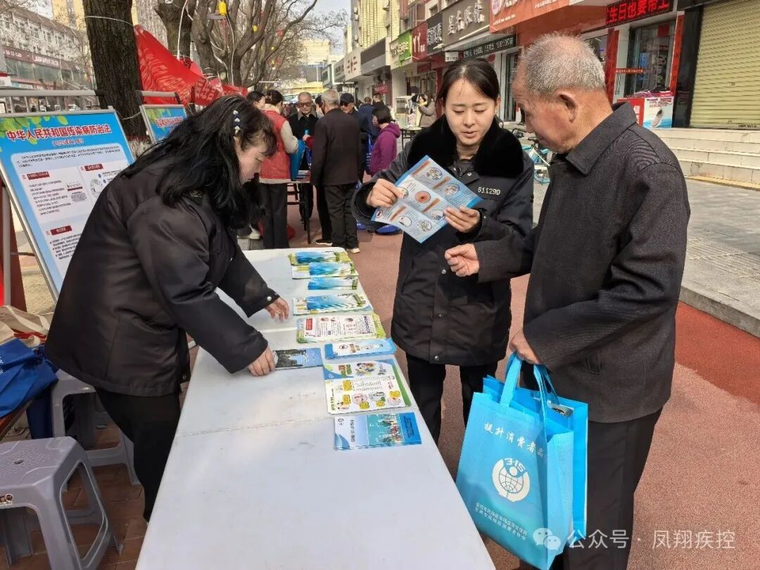 为进一步普及卫生健康知识,提升群众健康素养和维权意识,营造安全、放心、诚信的消费环境,在第44个“3·15国际消费者权益日”到来之际,宝鸡市凤翔区卫生健康局、区疾病预防控制中心组织骨干力量,在区政府门口开展“雍韵风华绘蓝图 品质赋能启新篇——共促凤翔消费品质跃升新征程”主题宣传活动。