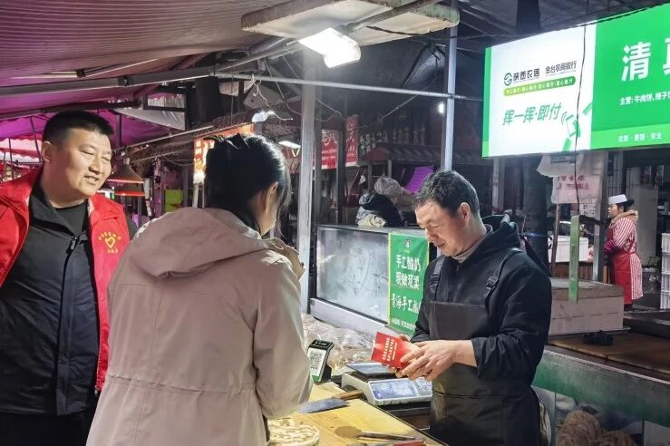 在“五进入”宣传方面,金台农商银行组建了多支“红马甲”金融服务队,深入农村、企业、校园、社区、商圈,开展精准化、接地气的金融知识普及活动。在永兴巷市场,设立专门的金融知识咨询台,悬挂宣传横幅,向市场内的商户和消费者发放宣传折页并根据前期“挥一挥”布放工作的进展情况进行业务知识宣讲,解答商户使用过程中的问题。此外工作人员用通俗易懂的方言,重点讲解了如何识别非法互联网贷款平台、防范“虚拟货币”投资陷阱,结合《征信业管理条例》讲解了信用信息采集范围和应用场景,特别提醒商户注意收单业务规范,警惕二维码被替换等风险,引导商户重视经营信用记录对贷款融资的重要性。